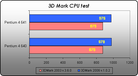 Версии 3DMark’03 и ’06 выбраны не напрасно, 3DMark’03 очень хорошо отзывается на изменение производительности системы, а 3DMark’06 является своего рода новым мерилом производительности. Но как видно на графиках, как бы не были чутки эти бенчмарки к производительности системы, результаты обоих процессоров почти равны.